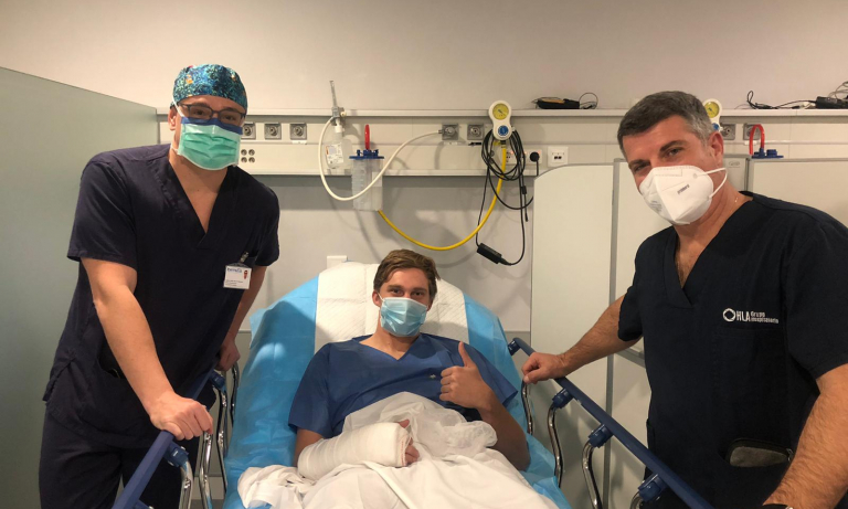 El jugador del UCAM Murcia CB, David DiLeo, ha sido operado satisfactoriamente del tercer metacarpiano de la mano derecha. El ala-pívot americano ha sido intervenido en Ibermutuamur por el traumatólogo Miguel Ángel Moltó y ha estado acompañado en todo momento por el fisio y coordinador de los servicios médicos del UCAM Murcia, Rogelio Diz.