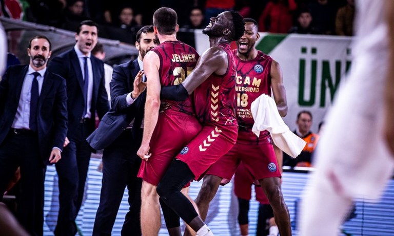 Pero el UCAM Murcia CB no había dicho la última palabra y salieron al último cuarto para hacer historia en Turquía. Un último cuarto que comenzó como los tres anteriores pero con el hándicap del marcador. Y es que, a falta de tres minutos, los universitarios seguían ocho abajo en el infierno turco pero, gracias a un recital de triples antagónico entre Jelinek (12 puntos y un rebote), Travis Trice (17 puntos, 5 rebotes y 7 asistencias) y McFadden (10 puntos y 5 asistencias), la gran defensa mostrada por todo el equipo y los errores puntuales en ataque de los locales, el conjunto murciano logró hacerse, contra viento y marea, con una victoria que pasará a la historia del club. Los universitarios comenzaron el último cuarto perdiendo de nueve y, finalmente, se lo llevaron con ocho puntos de ventaja (89-96).