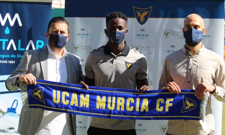 El defensa Admonio Vicente ha sido presentado esta mañana en la sala de prensa del BeSoccer La Condomina ante los medios de comunicación. En este acto, el jugador ha estado arropado por Pedro Reverte, director deportivo del Club, y Alfonso Reina, director general de la empresa Agua de Cantalar que se une esta temporada al UCAM Business Club.