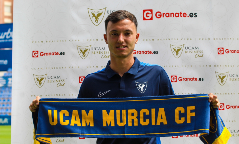 El Universidad Católica de Murcia Club de Fútbol ha presentado esta mañana al futbolista Ale Marín en la sala de prensa del Estadio BeSoccer La Condomina. El atacante ha estado arropado por Álvaro Muñoz, director deportivo del Club; Pablo Rosique, director General de Deportes de la UCAM; Juan Antonio Baños, directivo del Club; y José Ángel Gómez, dueño de Granate. La empresa murciana ha apadrinado esta rueda de prensa tras renovar su acuerdo de patrocinio por decimotercera temporada consecutiva con nuestro UCAM Business Club.