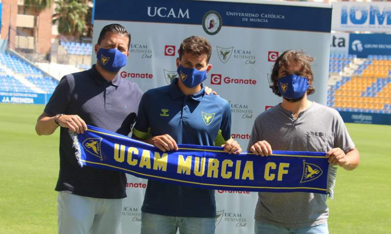 El centrocampista jienense Antonio Caballero ha sido presentado esta mañana en la sala de prensa del Estadio BeSoccer La Condomina. La empresa murciana, Granate, seguirá perteneciendo al UCAM Business Club para la próxima temporada y ha apadrinado la llegada del jugador andaluz.