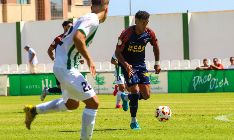 El UCAM Murcia Club de Fútbol no bajaba los brazos y seguía empujando en busca de ese gol que le diera los primeros tres puntos fuera del Estadio BeSoccer La Condomina. En el tramo final, Booker, que había salido en la segunda parte, se sacó un zapatazo lejano que se marchó besando la escuadra, y el extremo Diego, que sumaba sus primeros minutos oficiales de universitario, tuvo dos ocasiones para romper el 0-0 en el luminoso.