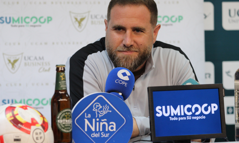 El entrenador del Universidad Católica de Murcia Club de Fútbol ha comparecido en el día de hoy en la sala de prensa del Estadio BeSoccer La Condomina para valorar la actualidad del primer equipo antes de un nuevo encuentro liguero. Javi Motos ha estado acompañado por Pablo Rosique, director General de Deportes de la UCAM; Juan Antonio Baños, directivo del Club; y Manuel Vicente Rosillo, CEO de Sumicoop que cumplirá una temporada más en nuestro UCAM Business Club.