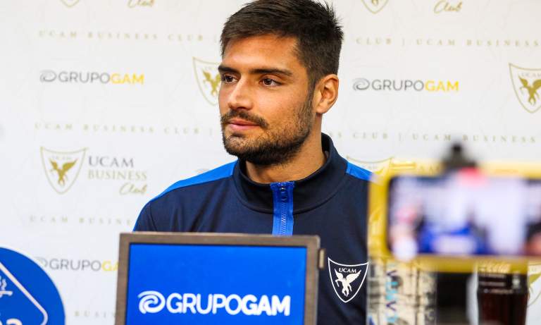 El Universidad Católica de Murcia Club de Fútbol se estrena, de manera oficial, este domingo, a las 17h, frente al Xerez CD en el Estadio BeSoccer La Condomina. Por esa razón, el capitán Javi Ramírez ha atendido esta mañana a los medios de comunicación en la sala de prensa del Estadio Besoccer La Condomina. Grupo GAM, que renueva su vinculación con el UCAM Business Club, ha sido la empresa responsable de patrocinar esta rueda de prensa.