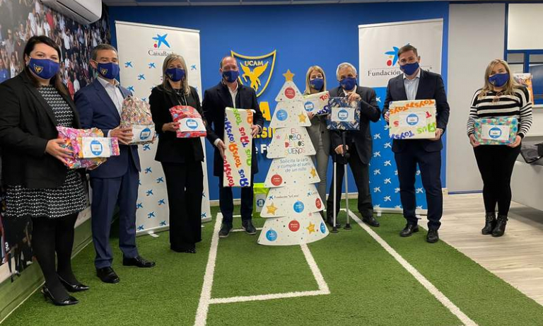 El Universidad Católica de Murcia Club de Fútbol ha participado por tercer año consecutivo en la iniciativa 'Árbol de los Sueños' de CaixaBank, un proyecto mediante el que la entidad financiera coordina la recepción de las cartas elaboradas por los niños y niñas en situación de vulnerabilidad y gestiona la entrega a cada uno de los participantes de sus regalos a través de toda la red de oficinas de CaixaBank repartidas por toda la Región de Murcia o de manera telemática.