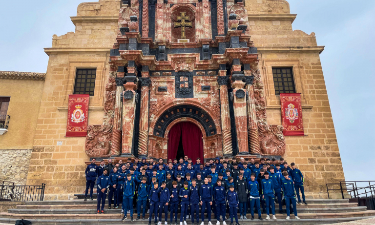 Los jugadores y técnicos que forman parte de la cantera del UCAM Murcia Club de Fútbol han realizado esta mañana una peregrinación a Caravaca de la Cruz por la celebración del Año Jubilar. Una actividad impulsada por la Comisión Pastoral y con la colaboración especial de nuestro capellán, Felipe Tomás Valero, en la que han participado más de 100 jóvenes.