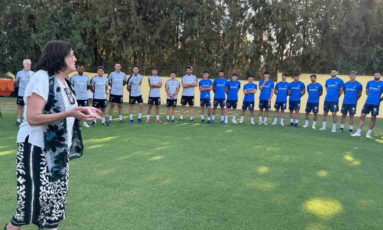 María Dolores García Mascarell, presidenta del Universidad Católica de Murcia Club de Fútbol, ha mantenido esta mañana un encuentro con los futbolistas y miembros del cuerpo técnico que conforman el primer equipo, acompañada por nuestra directiva, con motivo del inicio de la pretemporada.