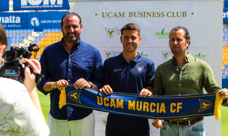 El Universidad Católica de Murcia Club de Fútbol ha presentado esta mañana al futbolista Urcelay en la sala de prensa del Estadio BeSoccer La Condomina. En el día de hoy, el centrocampista ha estado arropado por Álvaro Muñoz, director deportivo del Club; Juan Antonio Baños, directivo del Club; y los hermanos Víctor y Juan Antonio Lobo, en nombre de Neograss. La empresa murciana ha patrocinado este acto tras renovar su acuerdo de patrocinio por décima temporada consecutiva.
