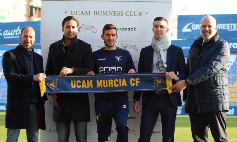 En la mañana de hoy ha sido presentado en la sala de prensa del BeSoccer La Condomina el futbolista Víctor Mena como nuevo jugador del Universidad Católica de Murcia Club de Fútbol. El andaluz ha estado arropado por Pablo Rosique, director General de Deportes de la UCAM; Juan Antonio Baños, directivo del Club; y Miguel Linares, nuestro director deportivo. Además, en este acto, se ha anunciado la incorporación de Logipack a nuestro UCAM Business Club. Nuestro nuevo miembro ha apadrinado esta presentación. De este modo, Nicolás Ballester, CEO de la empresa, ha estado junto al andaluz y le ha deseado suerte en esta nueva andadura.