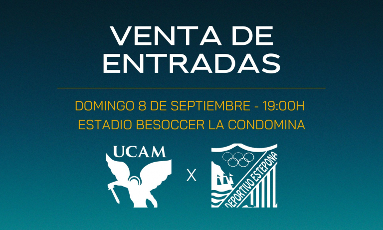 El Universidad Católica de Murcia Club de Fútbol comunica que ya están a la venta las entradas para nuestro primer partido oficial sobre el Estadio BeSoccer La Condomina de la temporada 2024/25. A partir de las 19h, el conjunto universitario se enfrentará al Club Deportivo Estepona.