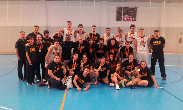Jornada triunfal para los equipos de la Universidad Católica de Murcia: oro en baloncesto femenino y en voleibol masculino; plata en baloncesto masculino; y bronce en balonmano femenino