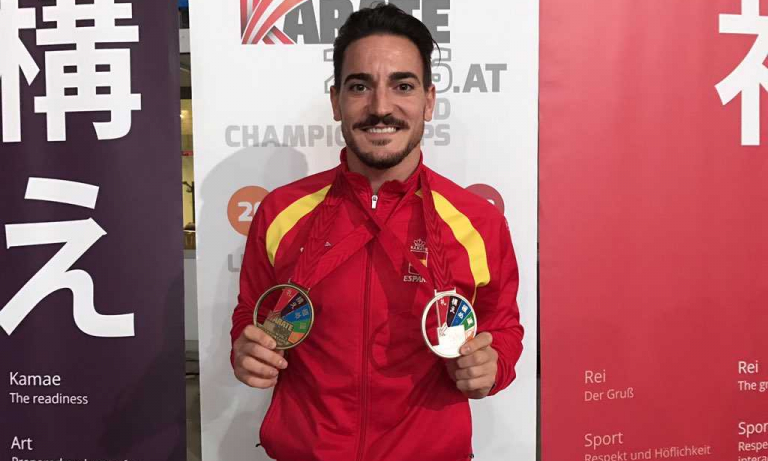 Gran resultado para el kárate español en el Campeonato del Mundo que se ha celebrado en Austria. Varios de los integrantes del equipo nacional están vinculados a la UCAM y lograron sumar metales para España: Damián Quintero, campeón de Europa y de la Liga Mundial, consiguió una plata tras ser derrotado por el japonés Ryo Kiyuna en la final, que revalidó su título con un 5-0. Además, consiguió el bronce junto a José Manuel Carbonell en katas por equipos tras imponerse por 4-1 a Malasia.
