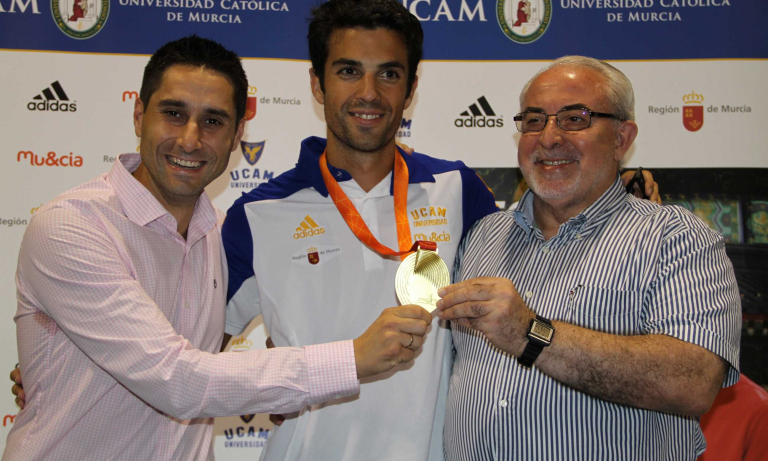 Por eso, las primeras palabras del marchador murciano fueron de agradecimiento: "Quiero agradecer a José Luis Mendoza y a la UCAM el apoyo que siempre he tenido. El apoyo de la UCAM ha sido clave para conseguir este éxito. Llevamos muchos años juntos y todavía quedan retos importantes por delante. Me siento muy arropado y querido. Ojalá pueda seguir consiguiendo trinufos para España, para Murcia y para la UCAM". Con el oro europeo y mundial ya en el bolsillo el próximo reto de Miguel Ángel López son los Juegos Olímpicos con los que completaría la triple corona y adelantó que "el año que viene me centraré en Río 2016 y sacrificaremos todas las pruebas que haga falta. Toda la preparación irá destinada a llegar lo mejor posible allí".
