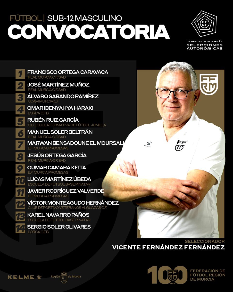 El seleccionador de la Región de Murcia, Vicente Fernández, contará con nuestro joven canterano Álvaro Sabando.