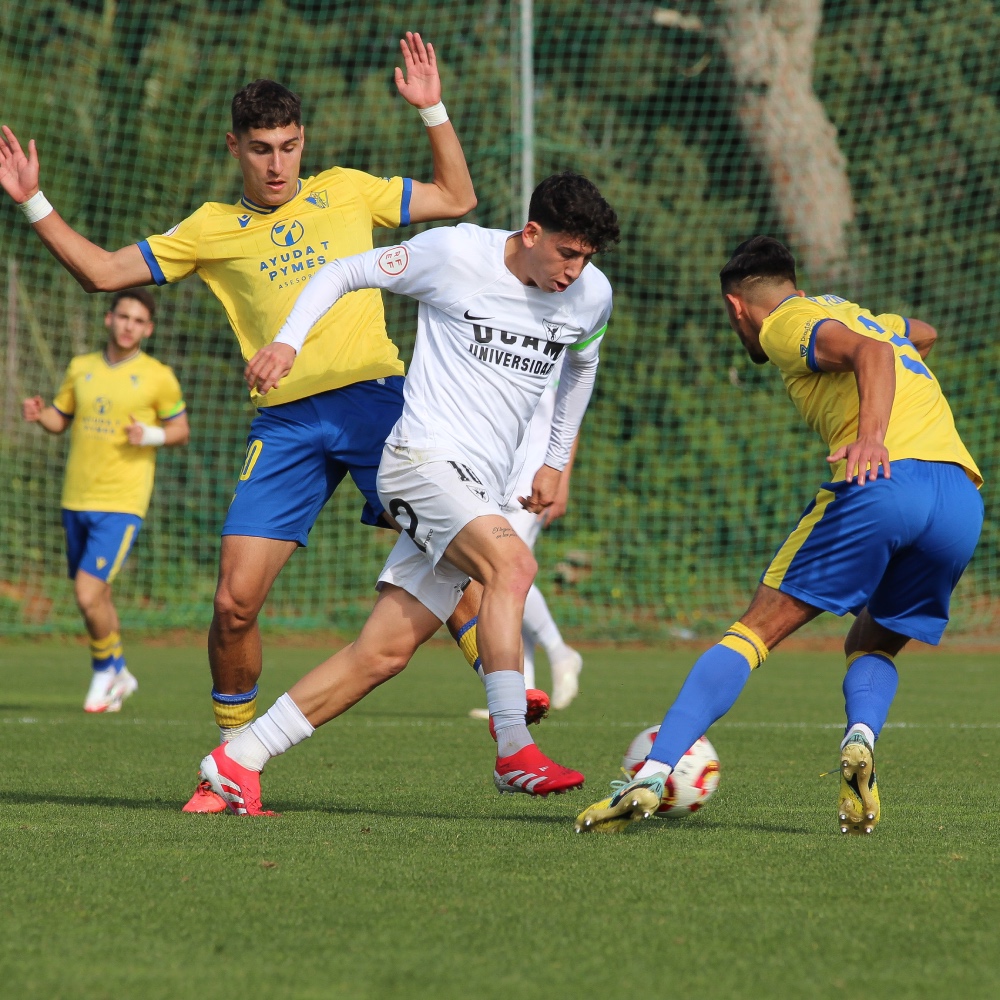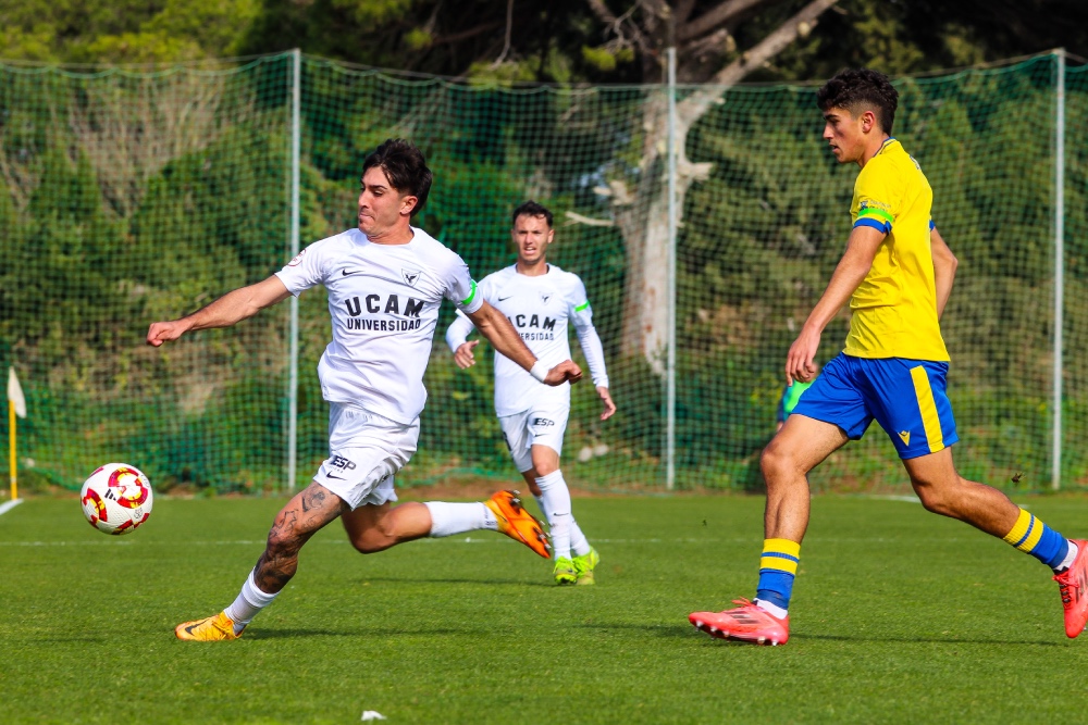 El Universidad Católica de Murcia Club de Fútbol ha sumado esta mañana un punto (1-1) en casa del filial del Cádiz CF. El conjunto universitario, que recibió el 1-0 en el minuto 1, fue capaz de igualar el marcador antes del descanso. Y en la segunda parte, el equipo ha generado las ocasiones más claras, fue muy superior al rival en la segunda parte y ha merecido llevarse llevarse la victoria de tierras gaditanas. El reciente fichaje Gonpi ha debutado en partido oficial.
