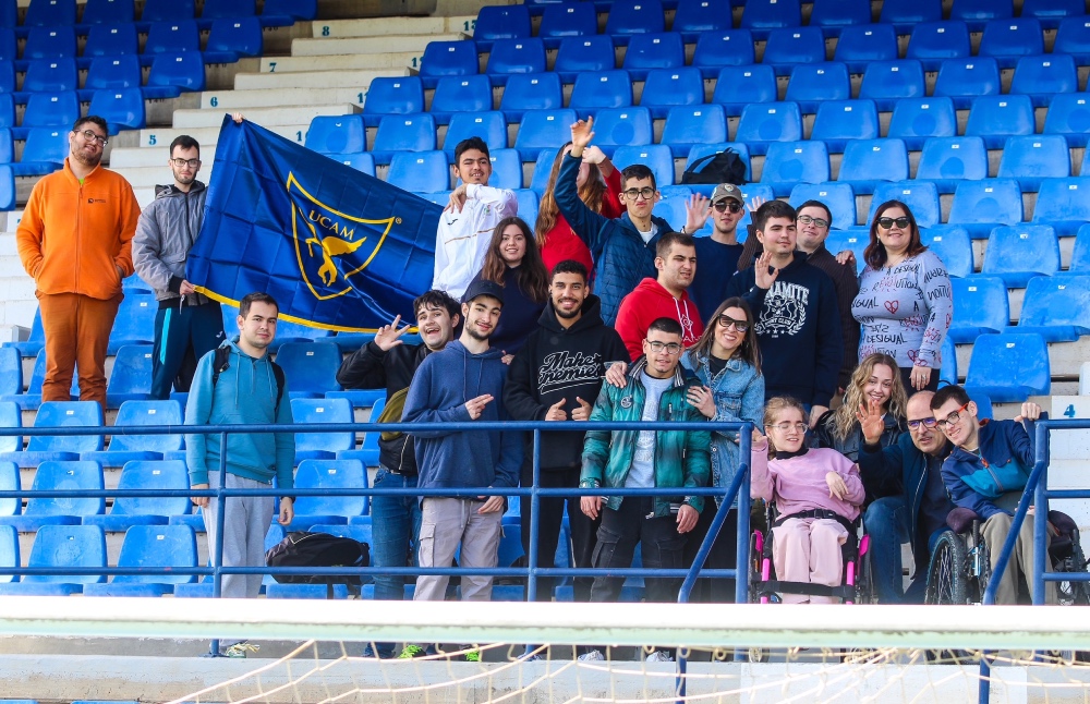 El CEIP Cierva Peñafiel y FAMDIF (Federación de Asociaciones Murcianas de Personas con Discapacidad Física y Orgánica) han sido protagonistas en la sesión de entrenamiento que el primer equipo del Universidad Católica de Murcia Club de Fútbol ha llevado a cabo esta mañana sobre el césped del Estadio Heredia 21 La Condomina.