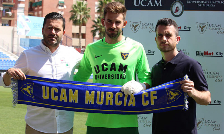 El guardameta Gianni ha sido presentado esta mañana como nuevo jugador del Universidad Católica de Murcia Club de Fútbol en La Condomina.