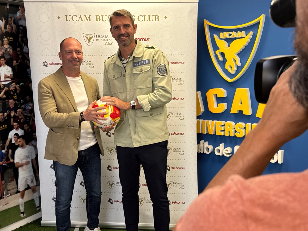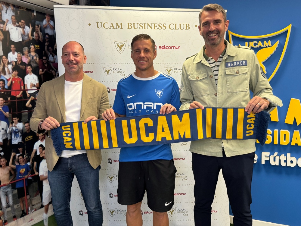 El acuerdo se ha hecho oficial esta mañana en la rueda de prensa de Dani Aquino, previa al Atlético Malagueño - UCAM Murcia CF. Miguel Sánchez, CEO de Setcomur, ha acompañado al delantero en comparecencia ante los medios de comunicación.