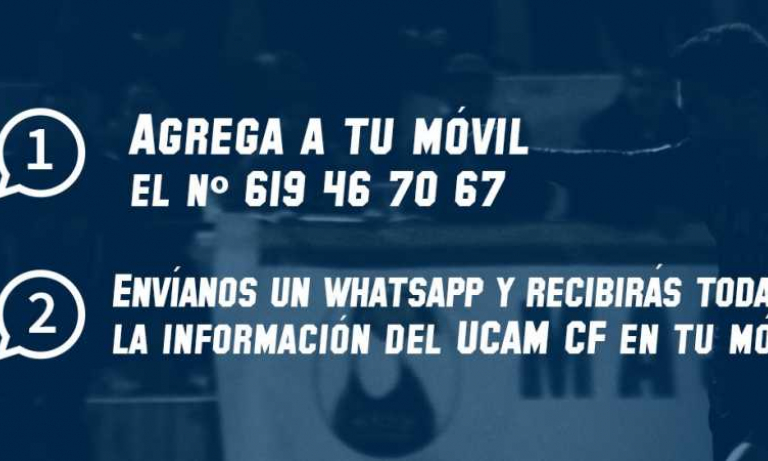 El Universidad Católica de Murcia Club de Fútbol estrena un nuevo servicio de alertas por whatsapp para sus aficionados, que podrán tener en primicia toda la información de su equipo directamente en su bolsillo: fichajes, noticias de última hora, contenido exclusivo, resultados, horarios, comunicados, promociones, ofertas...