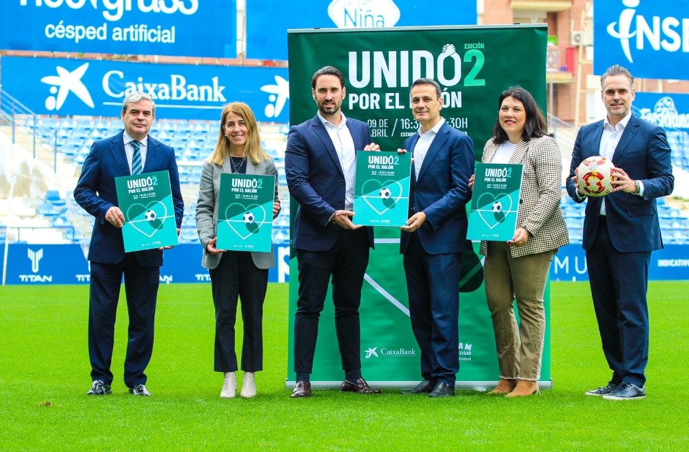 El Universidad Católica de Murcia Club de Fútbol, de la mano de CaixaBank, ha presentado este martes la segunda edición de Unidos por el Balón, una actividad solidaria que tendrá lugar el próximo 9 de abril en el Estadio BeSoccer La Condomina y que contará con la participación de más de 300 niños.