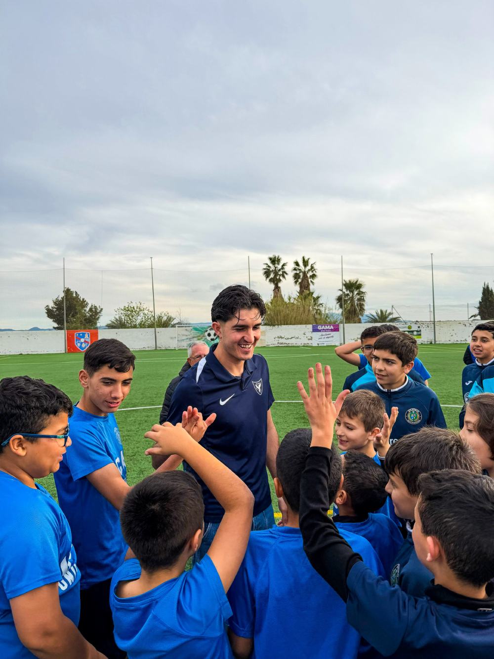 Julito Martínez, jugador de la primera plantilla del Universidad Católica de Murcia Club de Fútbol, ha realizado esta semana una visita muy especial a los jóvenes futbolistas del Atlético Villa de Alguazas, uno de los clubes afiliados al UCAM Murcia CF en la presente temporada 2025/26.